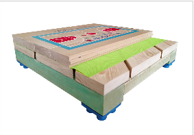 雙層板上下龍骨雙彈結構高吸震性和連續回彈性的固定懸浮式的運動木地板系統,適用于國內,國際比賽。